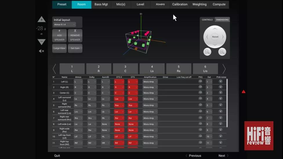 此外,它備有電子分音,換句話說,若然閣下的 3D 音場揚聲器陣的品牌屬于聯合國系統,Altitude 16 也可以協助你將聲道與聲道之間的表現差異收窄,帶來比較均勻的一致性!另外,它還提供 EQ 功能,你要環繞聲效果變得較厚較有溫度又得,你追求高音較突出較清銳亦得。放心,其 Optimization 功能會被限制于其韌體設計之內,不致令聲音表現不倫不類、離軌甚至脫軌,與萬余元的手指 EQ 功能是兩碼子事,原因是 Trinnov 最強亦最具價值的部分,是其針對聲音的時間、音色、場地空間之間的關係研究,如何將揚聲器擺位上的妥協減到最低;還有,其獨一無二的四頭三維拾音咪技術。拾取準確數據后,即使是每個聲道的分頻設置修正,也比從前容易得多。