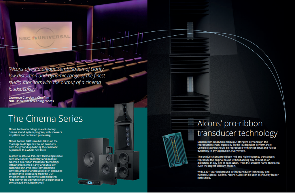 Alcons團(tuán)隊(duì)把這一杰出成果應(yīng)用到數(shù)字影院音響系統(tǒng)——C系列。C系列能提供HiFi聲質(zhì)以及完美的清晰度,讓觀眾長(zhǎng)時(shí)間觀看電影都不會(huì)出現(xiàn)聽覺疲勞。聲壓級(jí)覆蓋整個(gè)空間,大大提升遠(yuǎn)離屏幕的觀眾聽覺上的享受,讓所有觀眾都能感受身臨其境的效果,讓觀眾與電影更親近。