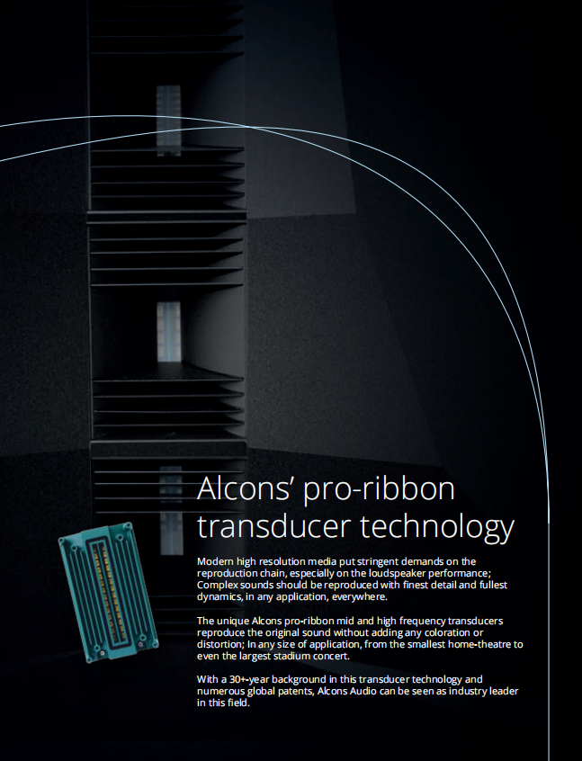 荷蘭Alcons(歐凱仕)在傳感器和音響系統設計方面擁有大量的專業技術,結合了數字信號處理器(DSP)和擴音器技術,形成了其獨特的魅力,鑄造了令人驚嘆的影院產品pro-ribbon 帶狀負載式影院音響系統,Alcons 歐凱仕pro-ribbon 技術,無論從細微聲音或者到大動態的爆炸聲,都能夠不壓縮1:1還原電影原聲,這是全球后期制作室以及全球高標準影院所追求的音響系統。