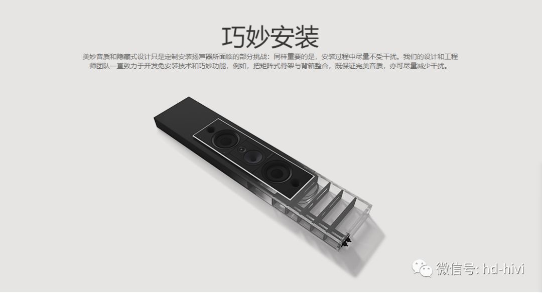 例如針對(duì)客廳影院,可以使用CCM系列/CWM系列的定制影院產(chǎn)品,“方與圓”簡(jiǎn)潔的外觀設(shè)計(jì)以及強(qiáng)大的空間適應(yīng)能力,對(duì)家居的融入度是很高的。