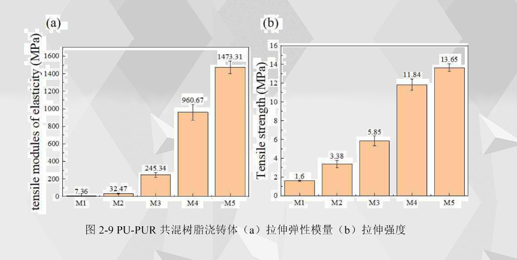 (3)PU-PUR 澆鑄體拉伸彈性模量與拉伸強度分析